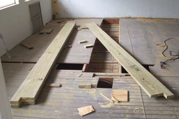 | Checking the fit before cutting the other two beams. | |