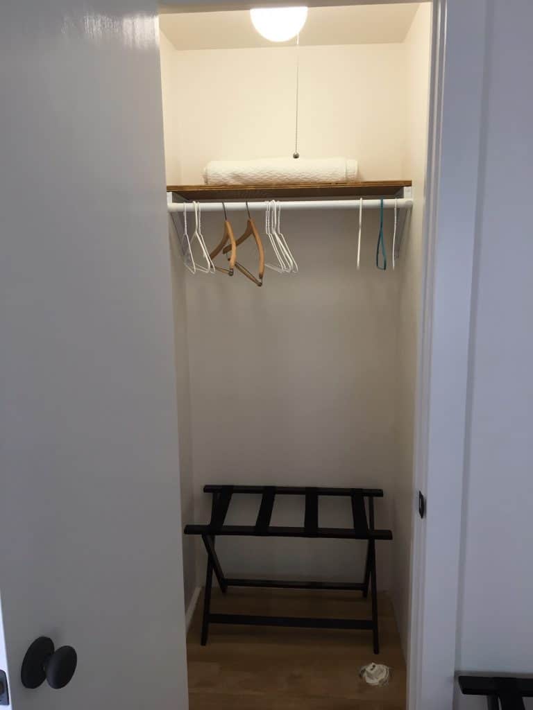 El Balcon is a second-floor bedroom efficiency with a King-sized bed (that may also be configured as two twin beds, if the guests prefer), which has a private entrance from the Marfa House front balcony. It has a private en suite bathroom with shower, a walk-in closet, and a coffee maker and seating with a reading light. Balcony seating is right outside the entrance, which has key-pad entry.